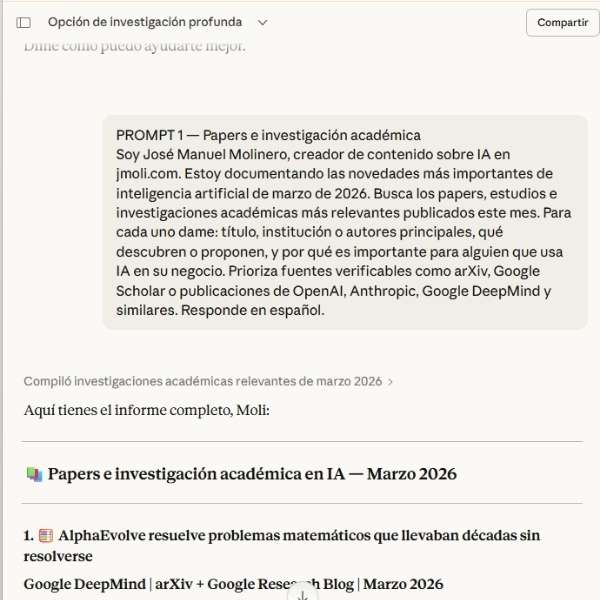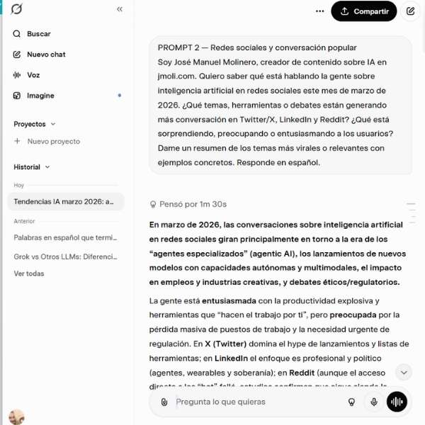 Las usé a todas con el mismo objetivo: entender qué está pasando en IA en marzo de 2026 y qué se habla en redes sobre el tema. Los resultados fueron muy distintos.